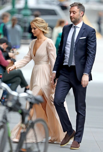 2019-й точно готовит нам не меньше ярких звездных свадеб, чем насыщенный 2018-й. И хотя актриса Дженнифер Лоуренс и ее избранник, арт-галерист Кук Марони, свои отношения тщательно скрывают, а дата самой свадьбы пока неизвестна, кое-что о предстоящем событии инсайдерам все же удается выцепить. Так, 12 мая папарацци сфотографировали пару накануне их закрытой предсвадебной вечеринки в Нью-Йорке. Образ Лоуренс заслуживает особого внимания: шифоновое платье нежного персикового оттенка L. Wells, босоножки Casadei и сумочка Roger Vivier в тон – всем невестам стоит взять на заметку.