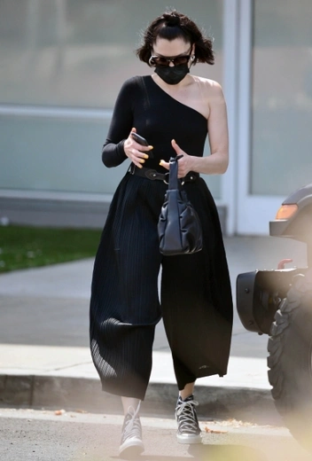 В водовороте повседневных дел задумываться о том, как разнообразить свой casual-гардероб и придать ему элегантности, бывает очень трудно. Однако некоторым знаменитостям удается найти время для этих манипуляций и облегчить нам задачу по подбору колоритных повседневных луков. Яркий пример — певица Джесси Джей. Этой весной знаменитость делает ставку на тотальный черный и выгуливает комплект из топа с открытым плечом и широких брюк. Актуальный наряд Джесси удачно дополняет ремнем, любимыми конверсами, сумкой и солнцезащитными очками с защитной маской.