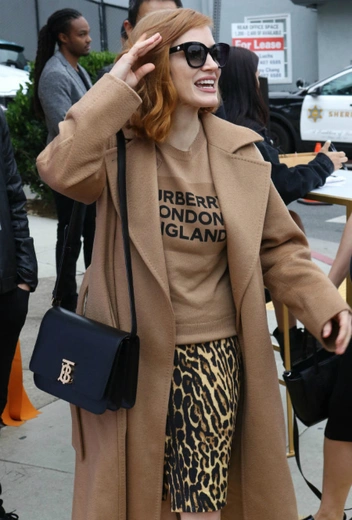 Черно-бежевый лук, мягко подчеркнувший рыжий оттенок волос актрисы.