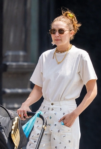 Джиджи Хадид любит разбавить звездную стритстайл-хронику небанальными фэшн-решениями, а после рождения дочери супермодель еще чаще экспериментирует с повседневным стилем и пополняет наш мудборд новыми луками. Для прогулки со своей малышкой по городу звезда подиумов примеряет образ в total-white, но придает летней классике особенное творческое звучание. Джинсы с отделкой серебристыми пайетками стильно смотрятся в сочетании с моно-серьгой и яркими массивными украшениями. Тотальный лук звезда дополняет белыми кроссовками и солнцезащитными очками.