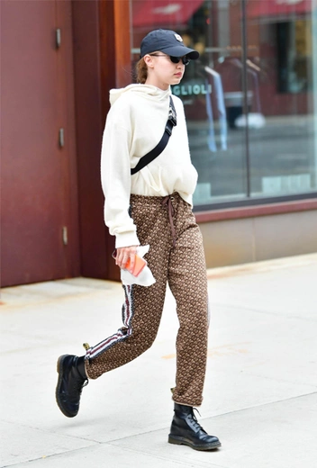 Bad hair days бывает у всех, однако представитель одного из самых влиятельных кланов в моде расслабляться никак не может. 28 мая папарацци засняли модель в Нью-Йорке в повседневном аутфите, продуманном до мелочей. Джиджи выбрала кремовое худи из кашемира от Mandkhai, свободные брюки на кулиске с монограммами от Burberry, ботинки Dr. Martens и любимую сумку Prada. Завершающие акценты – кепка и очки как возможность укрыться от папарацци (хотя способ определенно не слишком эффективен).