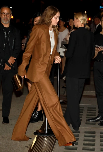 Стиль 24-летней Джиджи Хадид – настоящее пособие по трендам не только текущего сезона, но и будущего. Во многом это заслуга ее стилиста Мими Каттрелл, которая продумывает гардероб модели «от» и «до» и довольно часто обращает внимание не только на огромные модные конгломераты, но и на бренды поменьше. Уже второй раз за месяц стилист топ-модели делает ставку на российский бренд Lesyanebo. Марка славится своими оверсайз-костюмами, и именно такой выбрала Джиджи для презентация дебютной коллекции ароматов Карин Ройтфельд в Нью-Йорке. Свободные брюки со стрелками, классический пиджак с мужского плеча и натуральный оттенок – такой костюм точно пригодится Джиджи еще не раз.