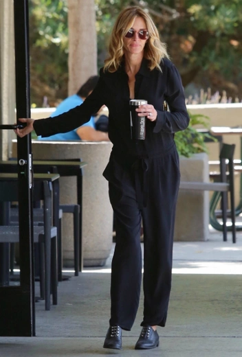 Многие селебрити стараются разнообразить повседневный стритстайл интересными нестандартными образами по последней трендовой повестке. Однако среди них находятся и такие, у которых получается опускать этот пункт списка модных ритуалов, обходиться минимальными усилиями, но добиваться такого же эффекта. Джулия Робертс — точно одна из них, и этот выход лучше всего демонстрирует ее умение быть лаконичной, но не слишком простой. Для вылазки в город актриса примерила слитный брючный костюм в темном оттенке из легкой ткани и дополнила аутфит стильными черными ботинками в классическом стиле. Тут не обошлось и без солнцезащитных очков — одного из самых любимых аксессуаров Джулии.