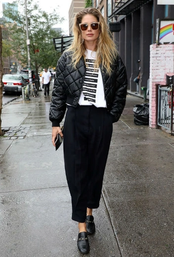 В этом сезоне мы будем носить именно дутые пуховики, и тут есть где разбежаться: взять хотя бы фасон. Укороченный вариант, как у нидерландской модели, визуально удлинит образ и будет отлично смотреться как в составе классического образа, так и в составе полуспортивного.