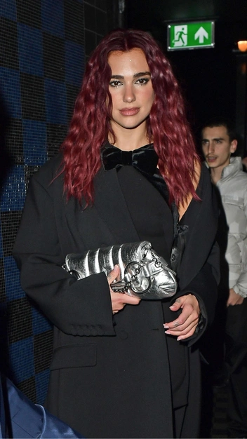 В чем отправиться на свидание в ресторан? У Дуа Липы есть модная идея: звезда предлагает одеться во все черное, ведь это самый беспроигрышный вариант. Она выбрала для ужина силуэтное мини-платье, украшенное бархатным бантом, и прикрыла эффектный наряд безупречным пальто в длине макси, которое практически закрывает сочетание колготок и босоножек. Акцент селебрити сделала на сумке — необычного дизайна и с металлическим эффектом.
