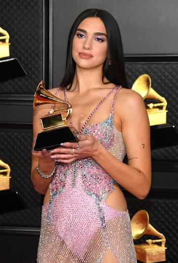 На прошедшей премии «Грэмми» было немало селебрити, но первенство в модной битве точно можно отдать 25-летней певице Дуа Липе. Поп-звезда выбрала ослепительное платье Versace с блестящей металлической цепочкой радужного цвета, вдохновленное полярным сиянием. Облегающий наряд, полностью покрытый мерцающей серебристой сеткой, был украшен милыми бабочками с декором кристаллами Swarovski.