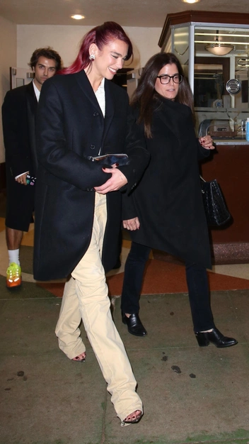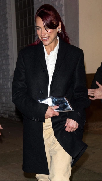 Дуа Липа не только экспериментирует с цветом волос, но и легко поддается модным исследованиям в своем гардеробе, находя каждый раз новые и необычные сочетания. Для недавнего выхода знаменитость выбрала классику, которую она смешала с уличным стилем. Певица надела белоснежную блузу в сочетании с бежевыми прямыми джинсами и дополнила их лаконичным черным пальто. В качестве обуви она выбрала босоножки, а в качестве сумки — металлизированный клатч.