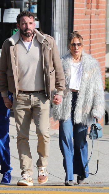 Дженнифер Лопес и Бен Аффлек отправились вместе с детьми в кинотеатр, куда певица надела повседневный аутфит: свободную короткую белую футболку и широкие джинсы на высокой талии с необработанными краями. Эффектности образу добавили объемная шуба с длинным ворсом и замшевые ботильоны на шпильке. Завершением выхода звезды стали голубая сумка и солнцезащитные очки в духе нулевых.