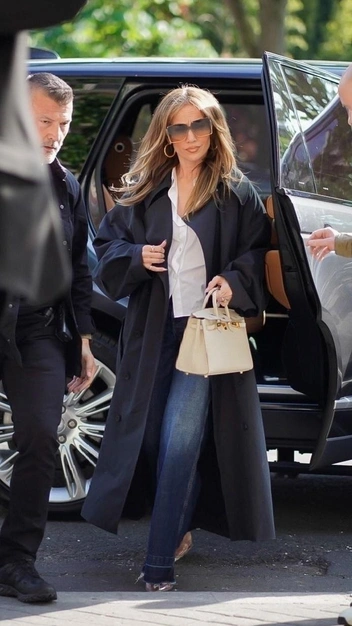 Белая рубашка — базовый элемент женского гардероба, но как ее носить так, чтобы выглядеть стильно и дорого? Дженнифер Лопес выбирает для модного выхода фасон свободного кроя и расстегивает у него небрежно воротник, также можно подвернуть рукава — у вас получится расслабленный образ. К рубашке в мужском стиле знаменитость подобрала длинный плащ, прямые джинсы, прозрачные туфли и аксессуары.