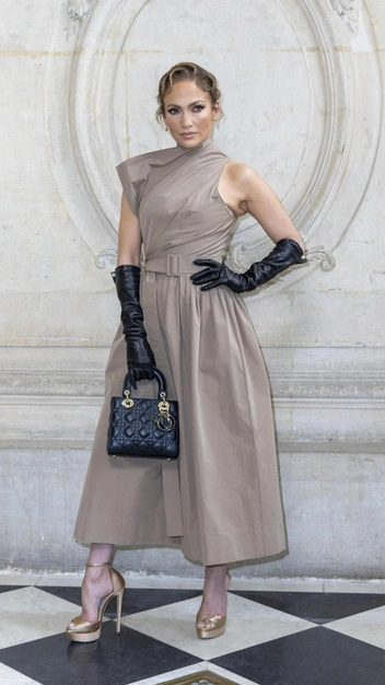 Пока в Сети появляется все больше слухов о разводе Дженнифер Лопес с Беном Аффлеком, звезда не унывает — она, напротив, показывает всему миру свою красоту. Так, на недавнем показе Christian Dior певица была замечена в роскошном платье силуэта New Look, к которому подобрала эффектные кожаные перчатки — главный аксессуар этой осени. Завершили безупречный образ блестящие туфли и черная сумка.