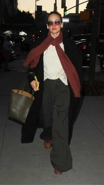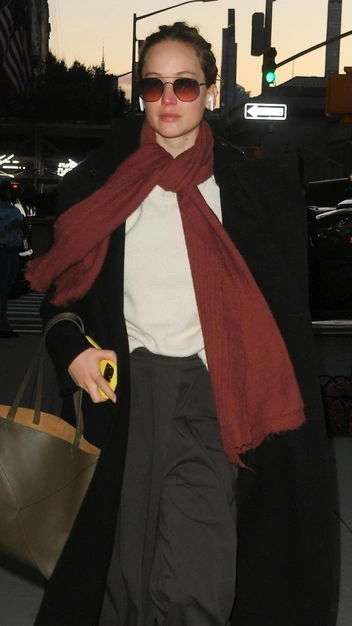 Дженнифер Лопес в последнее время демонстрирует стильные аутфиты, которые нам не терпится повторить. Она отдает предпочтение свободным вещам и природным оттенкам. Так, в недавнем аутфите голливудская звезда примерила свитер в молочном оттенке и темно-коричневые расклешенные брюки. Утеплилась она с помощью лаконичного черного пальто и акцентного бордового шарфа. Аксессуарами в образе стали кожаные туфли, зеленый тоут и очки.