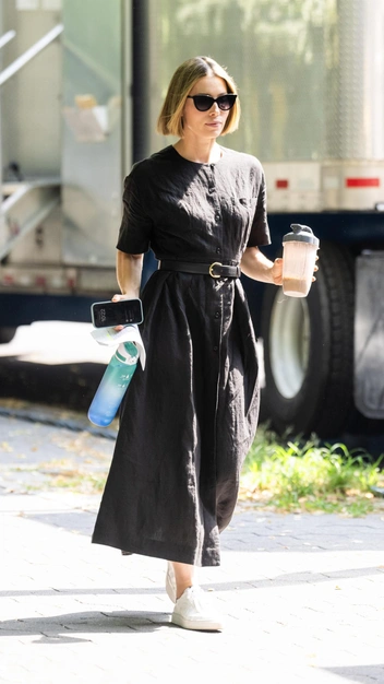 Многие девушки все еще сомневаются в сочетании платья и кроссовок, однако Джессика Бил нашла модный наряд, который безупречно будет смотреться с обувью в спортивном стиле. Знаменитость примерила черное платье-рубашку и подчеркнула его кожаным ремнем с золотой пряжкой. В качестве обуви она выбрала базовые кеды в молочном оттенке на небольшой платформе и завершила выход стильными очками.