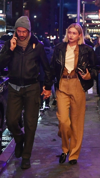 Продолжаем запоминать образы топ-модели, которые она надевает на свидания с Брэдли Купером. На этот раз знаменитость предпочла простой, но стильный образ. Джиджи Хадид надела свободную бежевую футболку и дополнила ее коричневой рубашкой, застегнув ее лишь на нижние пуговицы. К ним она подобрала стильные брюки со стрелками на высокой посадке и кожанку. Завершили аутфит аксессуары и украшения.