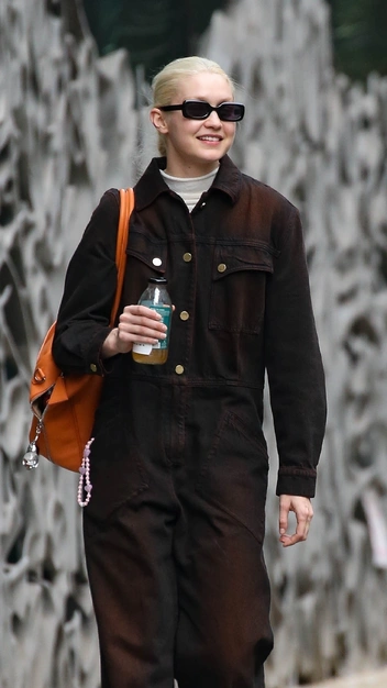 Джиджи Хадид, в отличие от своей младшей сестры Беллы, вне подиума предпочитает удобные и маскулинные вещи. Короткие юбки и кроп-топы модель оставляет для показов, а в свое свободное время хочет чувствовать себя максимально комфортно. При этом звезда всегда выглядит актуально и стильно. Как, например, в oversize-комбинезоне шоколадного оттенка, в котором Хадид была замечена в Нью-Йорке. К нему Джиджи подобрала белую водолазку, кроссовки, солнцезащитные очки и ярко-оранжевую сумку.