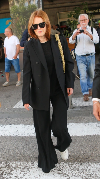Кажется, что весь звездный состав Голливуда съехался в Канны, где 17 мая стартовал кинофестиваль. Прилетела во Францию и Джулианна Мур. Фотографы и поклонники встретили знаменитость в аэропорту Ниццы. Звезда облачилась в черный костюм с широкими брюками и двубортным жакетом свободного кроя. К нему Мур подобрала базовую футболку в тон и белые кроссовки, а завершила стильный лук желтой сумкой-ведром и солнцезащитными очками.