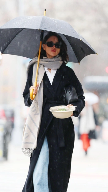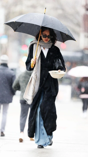 Если звезда появляется в стильном образе, то это не значит, что вы никогда не сможете его повторить. Напротив, многие успешные девушки выбирают лаконичные наряды, которые под силу создать каждой из нас. Взгляните на выход Эйсы Гонсалес — она надела базовую белую рубашку в сочетании с широкими голубыми джинсами. В качестве верхней одежды актриса и певица выбрала классическое черное пальто и подчеркнула его шарфом.