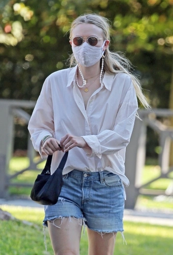 Пока многие из нас уже давно и успешно перешли на утепленный гардероб, в звездном Лос-Анджелесе селебрити еще не готовы окончательно распрощаться с непринужденным летним стритстайлом и активно выгуливают легкие фэшн-луки, наслаждаясь последними теплыми осенними деньками. Актриса Дакота Фаннинг остается верной классике жанра, сочетая джинсовые шорты, блузу пыльно-розового оттенка и кроcсовки от Alexander McQueen. Девушка дополняет образ солнцезащитными очками на цепочке и черной мини-сумкой.