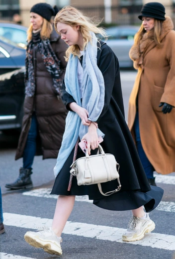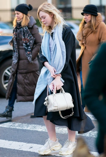 Легкая многослойность и массивные кроссовки составили стильную casual-комбинацию этого образа. Эль выглядит немного уставшей: зима берет все-таки свое. Правда, на чувстве стиля актрисы это никак не сказывается, поэтому продолжаем ловить ее стритстайл-выходы в светской фотохронике.