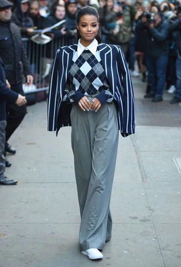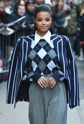 Дизайнеры нередко вдохновляются стилем преппи. Особенно он привлекателен для американских брендов, которые из сезона в сезон фантазируют на тему студенческого стиля. В будущем сезоне одна из самых интересных интерпретаций получилась у Майкла Корса, и один из образов его весенне-летней коллекции 2020 года уже выгуляла британская актриса Элла Балинска. На днях она отправилась на эфир Good Morning America и выбрала классический оверсайз-блейзер в полоску вместе со свитером с ромбовидным узором.