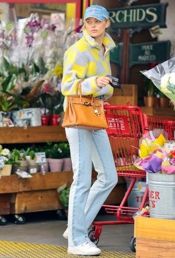 Эльза Хоск предлагает отойти от классических для зимнего стритстайла комбинаций черного и коричневого и других базовых оттенков и выгуливает колор-микс, который вам точно захочется опробовать в одном из своих выходов в этом сезоне. Звезда примеряет сочетание с оверсайз-свитером в желто-серую крупную клетку, светлыми джинсами и бейсболкой в тон. Нотку шика своему casual-образу Эльза придает с помощью коричневой сумки Birkin Hermès, а завершает лук обычными белыми кроссовками, в которых она уже не раз появлялась на публике.