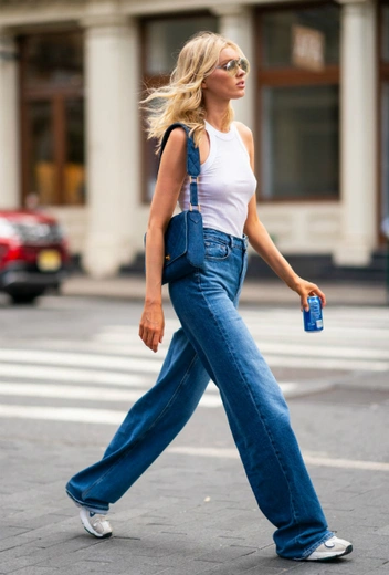 Летом меньше значит больше, и это как раз про классическое сочетание джинсы и белого цвета. Такое сочетание не нуждается в аксессуарах. Все, что нужно, — это пара стильных кроссовок или кед. Шведская супермодель Эльза Хоск дополняет этот универсальный образ широкими очками и полуспортивной сумкой на одно плечо глубокого синего цвета.