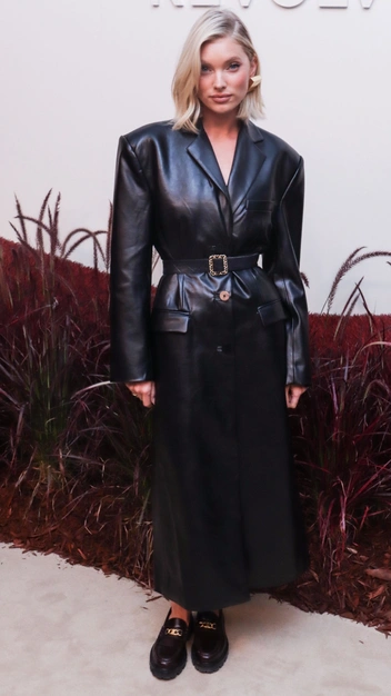 Стиль Эльзы Хоск обожают девушки по всему миру. Модели удается собирать стильные и понятные аутфиты из самых трендовых вещей. На одно из мероприятий в Нью-Йорке Эльза пришла в черном кожаном плаще на манер 90-х. К нему селебрити подобрала лоферы и крупные серьги.