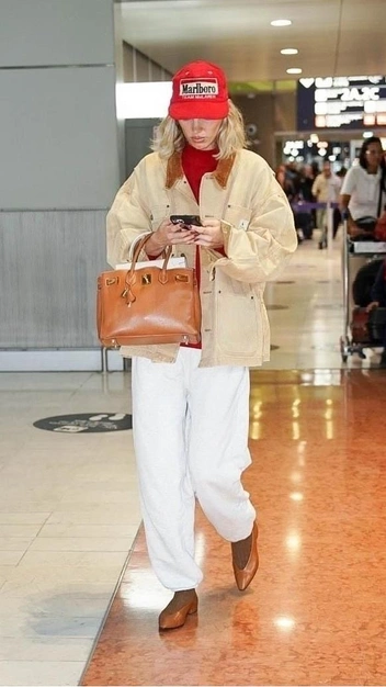 Если вы не в силах расстаться со спортивными брюками, тогда предлагаем вам повторить модный образ Эльзы Хоск, который выглядит стильно. Знаменитость примерила терракотовую водолазку в сочетании с джоггерами и в качестве верхней одежды выбрала трендовую «куртку рабочего». Шика выходу придали аксессуары — остроносые туфли на маленьком каблуке и вместительная сумка.