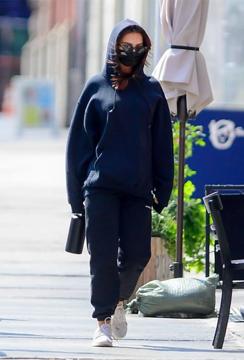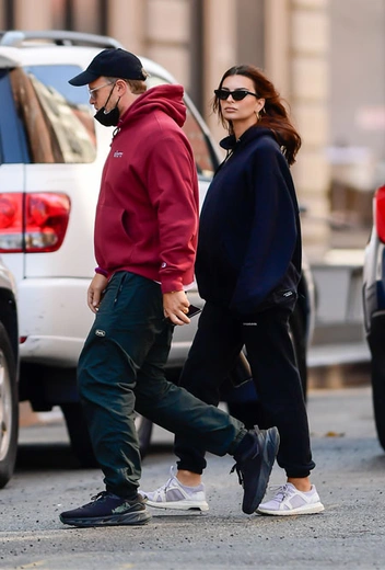 Джастин и Хейли Бибер – конечно, далеко не единственные, кому нравится расслабленный унисекс-стиль. Супруги Эмили Ратажковски и Себастьян Бир-Макклард также часто показываются на публике в спортивных аутфитах с объемными худи и джоггерами, дополненными кроссовками. На этот раз они решили подобрать идеальное цветовое трико – темно-синий, изумрудный и бордовый.