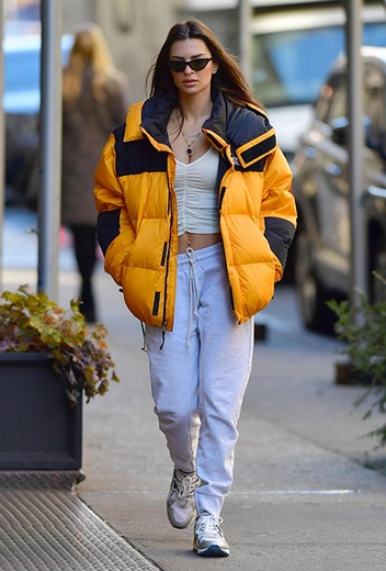 Любовь актрисы и модели к раздеванию стала не только предметом подражания многих девушек, но и череды довольно ироничных шуток. На днях во время очередной прогулки по Нью-Йорку Эмили появилась в спортивных брюках-джоггерах и легком открытом топе с декольте. А чтобы не замерзнуть, набросила теплую куртку The North Face. Повторять не советуем: здоровье – важнее.