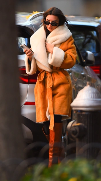 Пока западные СМИ обсуждают нового бойфренда знаменитости, секс-символ Эмили Ратаковски гуляет по Манхэттену в стильной оверсайз дубленке коричневого цвета с белым меховым воротником. Дополнила аутфит модель сапогами-трубами и солнцезащитными очками. Предлагаем вам вдохновиться стильным образом Эмили и отправиться на поиски идеальной винтажной дубленки.