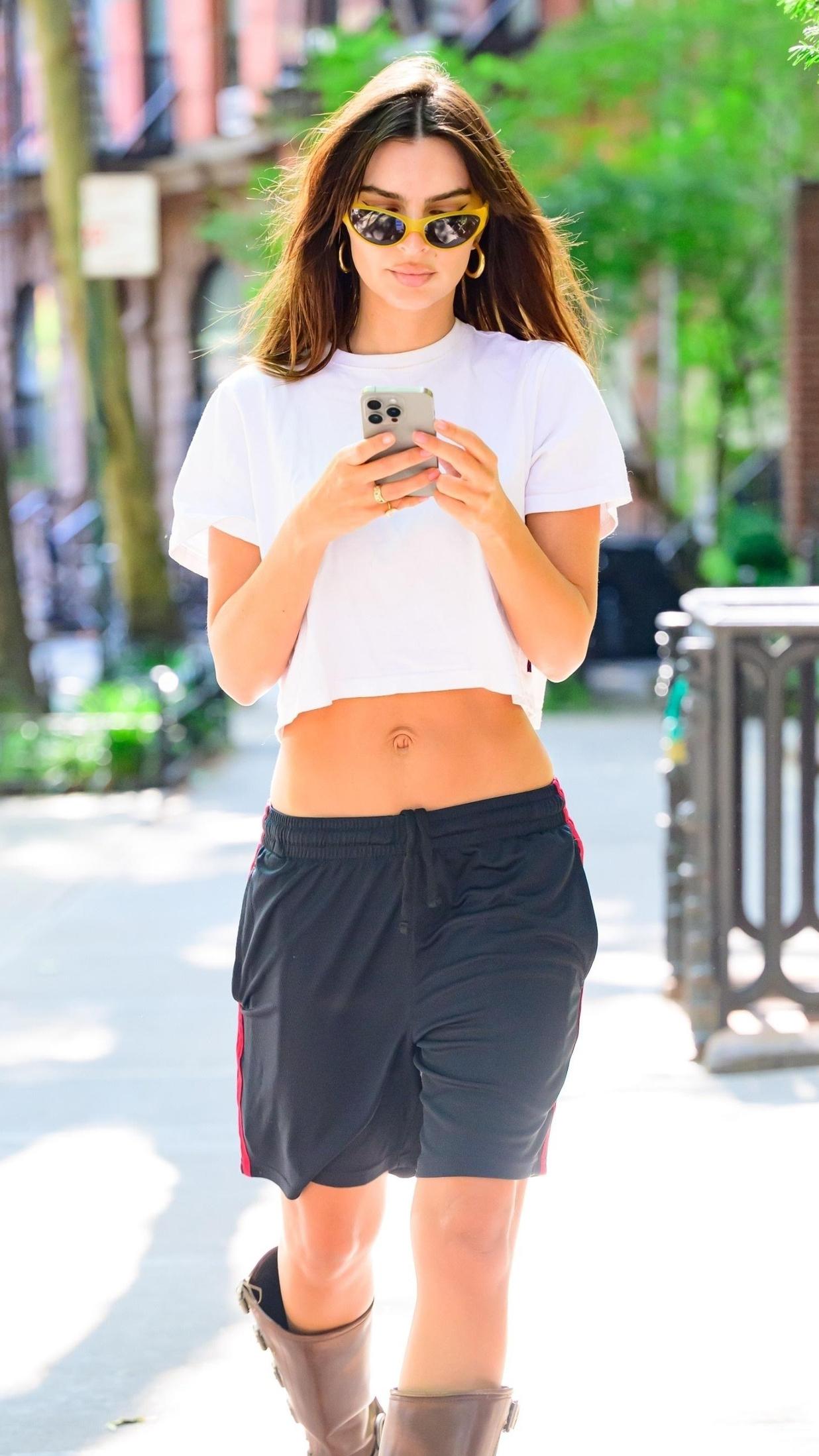 Самые модные девушки носят летние платья и шорты с демисезонной обувью. Почему? Потому что это стильно. Так было принято еще сов времен музыкального фестиваля Coachella, где селебрити надевали короткие платья бохо с ковбойскими сапогами. Эмили Ратаковски возрождает тенденцию и показывает, как одеваться летом. Она примерила спортивный образ и подобрала к нему грубые ботинки с широким голенищем.