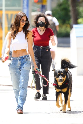Эмили Ратаковски не изменяет любимому сочетанию вещей. Американская модель вновь облачилась в джинсы с прямыми штанинами и высокой посадкой и белый кроп-топ. Идеальным завершением аутфита стали коричневые лоферы и солнцезащитные очки.