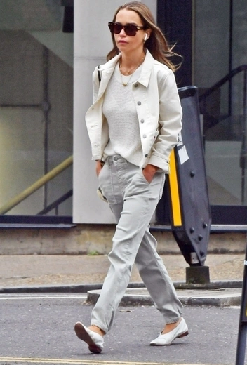 У многих Эмилия Кларк ассоциируется с женственностью и изысканностью, но такое впечатление обманчиво. Можно с уверенностью говорить о том, что Эмилия на экране и в жизни — это действительно два разных человека, что отчетливо бросается в глаза при взгляде на ее стритстайл-образы. Для повседневных выходов звезда предпочитает максимально комфортные луки в сдержанном, лаконичном исполнении. Для летних будней Кларк составляет аутфит в светлых оттенках цветовой палитры — белом, кремовом и сером. Мешковатые джинсы и трикотажный пуловер актриса дополняет джинсовой курткой и мягкими туфлями на плоской подошве. Образ Эмилии завершают объемная сумка в пляжном стиле и солнцезащитные очки.