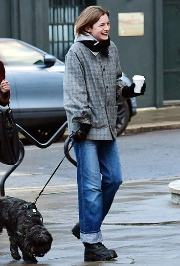 После выхода нового сезона сериала «Корона» Эмму Коррин ждал успех, и теперь ей приходится привыкать к повышенному вниманию папарацци. Фотографы и поклонники постоянно преследуют молодую звезду, однако о своем внешнем виде девушке переживать не стоит. Эмма особенно вдохновляется маскулинным стилем – и в этом у них есть немало сходств с ее экранной героиней, принцессой Дианой, которая в 90-х носила похожие образы с пиджаками. Для прогулки с питомцем Коррин решила примерить свободные джинсы прямого кроя, худи серого цвета и объемный пиджак в клетку, дополненный перчатками.