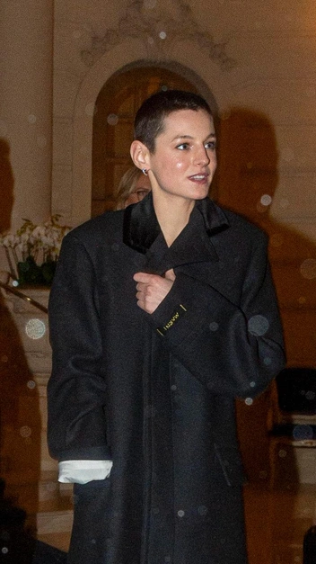 Не оторвать взгляд от влюбленной и стильной Эммы Коррин, которая каждый новый выход демонстрирует последние тренды сезона. На этот раз знаменитая актриса отправилась на ужин с Рами Малеком в элегантном образе. Ее вечерний наряд прикрывает эффектное пальто в графитовом оттенке с акцентной белой подкладкой, а эффектности и стиля придают ярко-зеленые гольфы в разноцветную полоску и белоснежные мюли с тупым мысом.