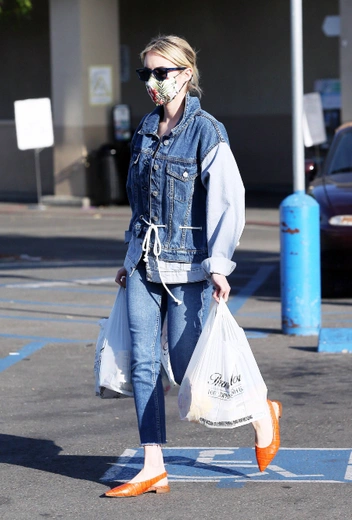 В этом сезоне деним проявил себя по-максимуму. На подиумах мы видели все варианты джинсов, курток с активным декором, пальто необычного кроя, и все – из уже давно полюбившегося нам денима. Актриса Эмма Робертс тоже высказала свою любовь к нему. Недавно во время шопинга она примерила базовые джинсы, куртку необычного кроя с контрастными вставками и дополнила наряд туфлями на плоском ходу.