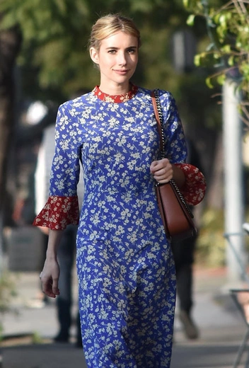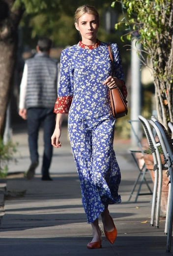 Погода в Лос-Анджелесе и его окрестностях улучшается, и Эмма Робертс с удовольствием облачается в свои любимые пасторальные платья. Все варианты легких нарядов в мелкий цветочек или клетку виши в гардеробе актрисы занимают особое место, и на днях она как раз продемонстрировала излюбленный наряд – нежно-голубое платье длины макси от HVN с милым принтом, остроносые балетки апельсинового цвета и плетеную сумочку от Stella McCartney.