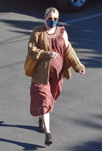 Эмма Робертс – одна из немногих звезд, кто может похвастаться оформленным персональным стилем, не зависящим от текущих тенденций. Причем это вовсе не отменяет того факта, что к излюбленным фасонам вещей может легко добавлять трендовые позиции, которые сделают гардероб более актуальным Накануне беременную актрису заметили на улицах Лос-Анджелесе в ее фирменном образе – свободном платье в пасторальном стиле, дополненном ботинками на устойчивом каблуке. Завершающим штрихом аутфита стал объемный теплый кардиган толстой вязки – универсальная база, которая станет основой повседневного стиля.