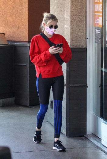 Эмма Робертс может похвастаться одним из самых масштабных гардеробов в Голливуде: столько разнообразных нарядов, кажется, не показывал никто из селебрити в это сложное время пандемии. При этом в ее шкафе есть не только несколько десятков разнообразных женственных платьев, но и довольно практичные и повседневные образы в спортивном стиле. Так, для небольшого шопинга девушка выбрала ярко-красный свитшот, практичные лосины с контрастными вставками и черные кроссовки.