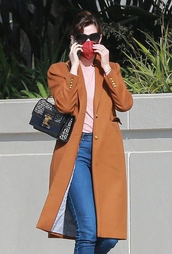 Актриса Энн Хэтэуэй довольно редко попадает в объективы папарацци. Зато каждый раз поклонники принимают новые кадры фотографов с особым восторгом. Недавно звезда все же порадовала фанатов новым появлением – вместе со своим мужем Адамом Шульманом она отправилась на прогулку и выбрала удобный, но при этом стильный базовый образ. Звезда предстала в классическом карамельном пальто, нежно-розовом топе и синих скинни-джинсах, дополненных универсальными белыми кроссовками Nike.