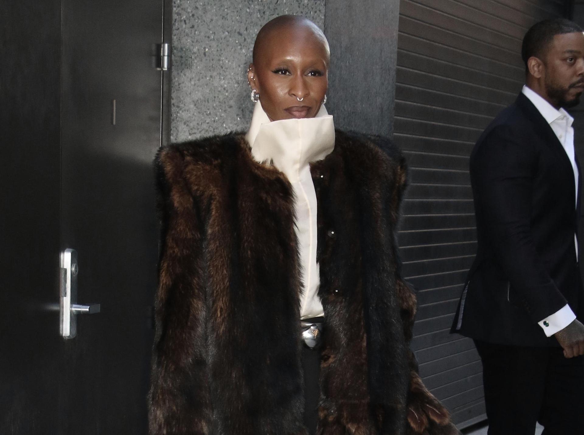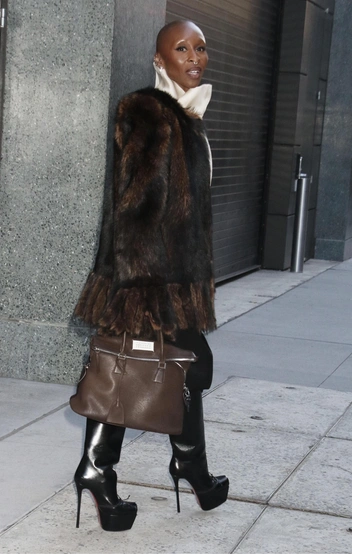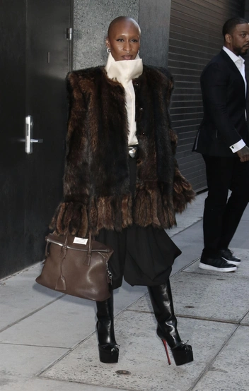 Если вы думали, что роскошные шубы — удел только русских женищн и любительниц Slavic core, то вы ошибались. Синтия Эриво доказывает обратное. Для своего последнего выхода актриса выбрала весьма экстравагантный образ: кожаные ботфорты на высоком каблуке, блузу с воротником-стойкой и широкие брюки в духе Поля Пуаре. Но даже такие акцентные вещи кажутся почти незаметными, когда в игру вступает шуба. Она вывела образ Синтии на новый уровень — добавила шика, фактуры и намекнула всем, что в этом сезоне именно роскошная шуба должна стать вашим главным аксессуаром.