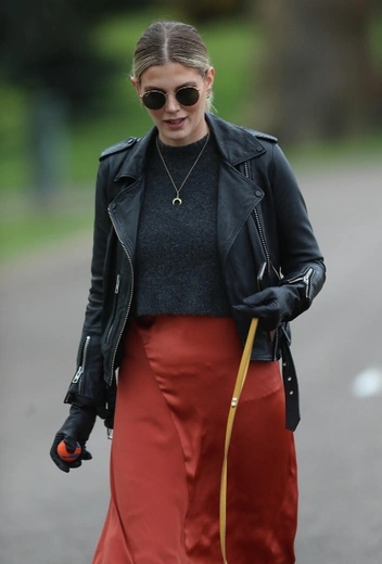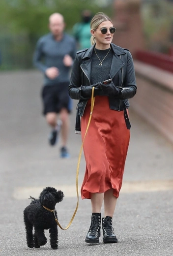 Сегодня нам всем стало немного не до моды, и об этом ярко свидетельствует зведная хроника: знаменитости с радостью поменяли изысканные наряды на простые домашние комбинации и появляются в них как во время непродолжительных прогулок с родными, так и во время походов в магазин. Исключение составили Эшли Робертс и Эшли Джеймс. Последняя решила не искушать себя возможностью полного комфорта и уже давно выгуливает самые трендовые варианты аутфитов даже на моцион с питомцем. В этот раз модный образ составили шелковая юбка миди в красном оттенке, черные кофта, кожанка и массивные ботинки в тон верха.