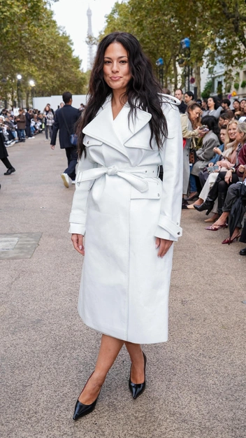 Какую верхнюю одежду выбрать женщине plus size, чтобы подчеркнуть фигуру и выделить формы? Предлагаем присмотреться к недавнему образу Эшли Грэм, которая знает все стилистические приемы. Знаменитость отдала предпочтение светлому пальто, у которого сделан акцент на талии с помощью съемного пояса. К нему топ-модель подобрала лакированные туфли с острым мысом и завершила элегантный образ нюдовым макияжем.