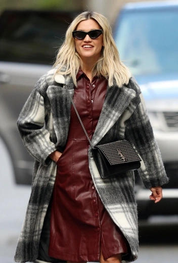 Несмотря на то, что май наконец-то наступил, а с ним пришло и долгожданное тепло, переходить исключительно на легкие вещи пока что не стоит. Предлагаем оставить на вешалках несколько аутфитов для прохладных весенних дней, чтобы быть на высоте даже в дождливую погоду. Берем пример с Эшли Робертс, следуя актуальной трендовой повестке: американская певица сочетает кожаное бордовое платье с клетчатым черно-белым пальто и нюдовыми лодочками. Образ дополняют черные солнцезащитные очки и черный клатч Louis Vuitton.