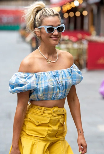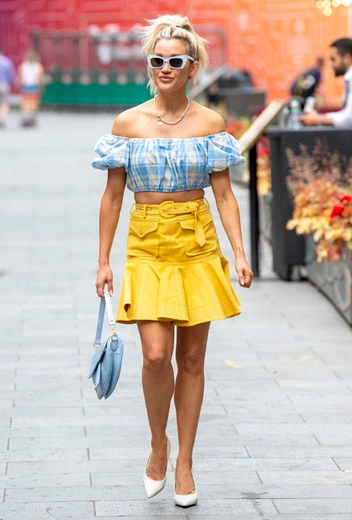 Многие из нас уже соскучились по летним отпускным платьям, кроп-топам и микро-шортам. Однако в текущих реалиях дальние путешествия пока сложно осуществимы и откладываются на неопределенный срок. Правда, путевка на море – вовсе не обязательное условие, чтобы приобрести для своего гардероба летние наряды. Эшли Робертс, например, с удовольствием носит круизные образы в городе. Причем не только в выходные, но и в будни дни. Недавно ведущая отправилась на студию в аутфите, который мы точно возьмем в свой мудборд для предстоящих путешествий. Звезда выбрала ярко-желтую мини-юбку со складками, кроп-топ с рукавами-буфами и белые лодочки, дополненные очками в прямоугольной оправе и нежно-голубой сумкой.