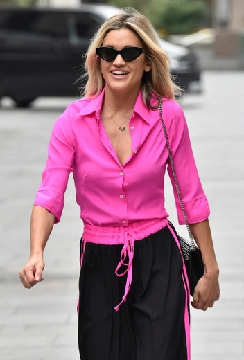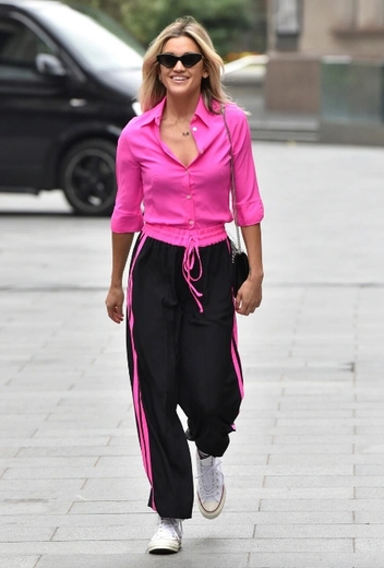 После карантина многие из нас испытывают ностальгию по комфортным домашним аутфитам, в которых можно было смело ходить как по улице, так и по квартире. Большинство селебрити пока что не готовы расстаться с полуспортивным стилем и подбирают самые разные варианты выходных образов, максимально приближенных к любимым домашним размахайкам. Эшли Робертс показывает, как остаться в рамках трендовой повестки и одновременно удовлетворить потребность в удобстве и комфорте. Расслабленную брючную комбинацию в черно-розовой палитре удачно дополнили классические белые конверсы, черный клатч на цепи и солнцезащитные очки в тон.
