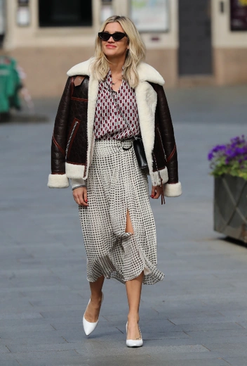 Новый день – новый модный урок от Эшли Робертс, которой не сидится дома. Для очередного рабочего дня в студии Heart Radio она выбрала образ, в который умело интегрировала тренд последних сезонов – сочетание в одном наряде сразу двух активных принтов. Решение – для смелых, но певице точно по зубам. К легкой струящейся блузе с активным орнаментом она добавила юбку с разрезами и мелким принтом и набросила поверх куртку-авиатор оттенка горького шоколада.