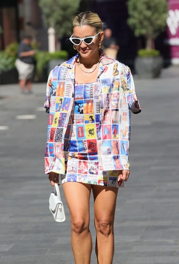 С наступлением лета мы намного смелее примеряем самые яркие и красочные оттенки. И в этой стезе Эшли Робертс точно нет равных. Неон, пастель или яркие принты – радиоведущая и экс-участница группы The Pussycat Dolls может комбинировать все. Накануне певица примерила наряд, который отлично подойдет для вечеринки или похода на выставку в стиле поп-арт. Звезда примерила красочный костюм из мини-платья и рубашки с коротким рукавом, усыпанный яркими летними кадрами. Отличное настроение в таком наряде точно будет обеспечено!
