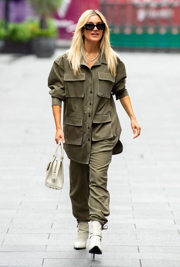 Оттенки хаки и сафари-стиль уже давно не относятся исключительно к мужскому гардеробу. Женщины с интересом заимствуют понравившиеся образы и миксуют со своими нарядами, создавая необычные комбинации. Правда, многие переживают, что такие наряды могут смотреться не так гармонично и уместно. Однако переживать не стоит – на женщинах эти направления выглядят так же удачно, как и на мужчинах. Отличный пример наряда на каждый день нам показала Эшли Робертс. Звезда взяла за основу костюм цвета хаки с крупными накладными карманами и дополнила его белыми ботильонами и миниатюрной сумкой молочного цвета.