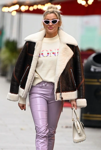 Экс-участница группы The Pussycat Dolls когда-то одевалась в довольно сомнительные и не всегда сочетающиеся вещи, зато сейчас вовсю пользуется статусом законодательницы моды и вдохновляет на эксперименты с образами круглый год. Особенных успехов она добавилась по части комбинирования оттенков друг с другом, причем Эшли показывает не только привычные всем комбинации, но и неожиданные сочетания. Накануне она решила показать, как носить нежную пастельную палитру в холодный сезон. Девушка выбрала лавандовые брюки, кремовый свитшот с красочной надписью, классические лодочки мятного оттенка и дополнила образ теплой дубленкой.